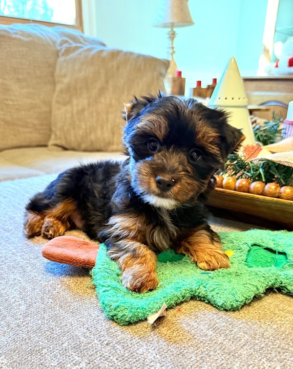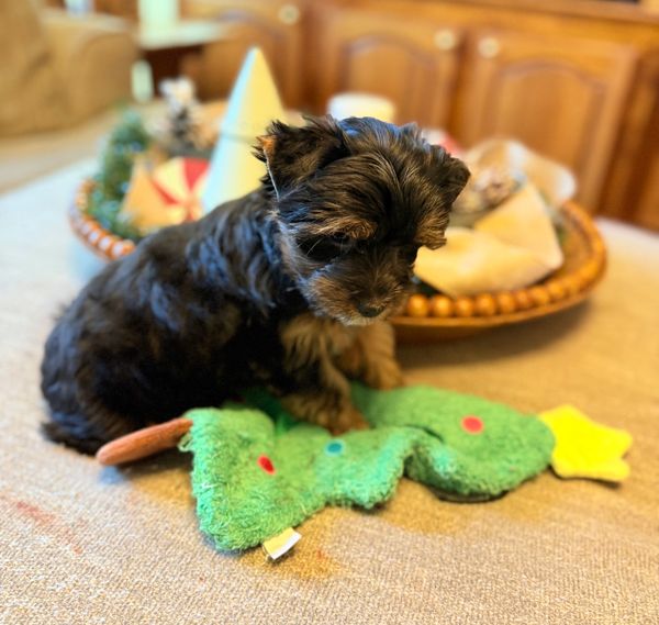 Yorkies are loyal, intelligent, and curiously playful little companions with big personalities. They adore their toys and snuggling up with you every chance they get.